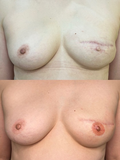 外傷や手術痕を目立たなくしたり、乳輪再建の一部として自然な色調を再現する目的で行います。