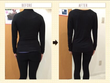 さらに、ウエスト−6㎝、腰回り−9.5㎝、ヒップ−6㎝、太もも−4㎝、二の腕−2.5㎝という素晴らしい結果でした。
